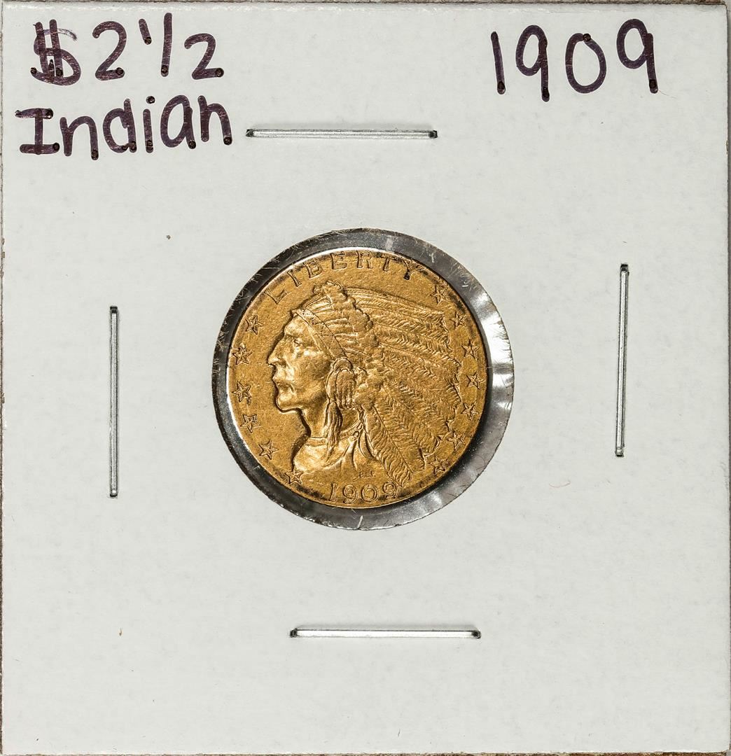 One 1909 $2 1/2 Indian Head Quarter Eagle Gold Coin.