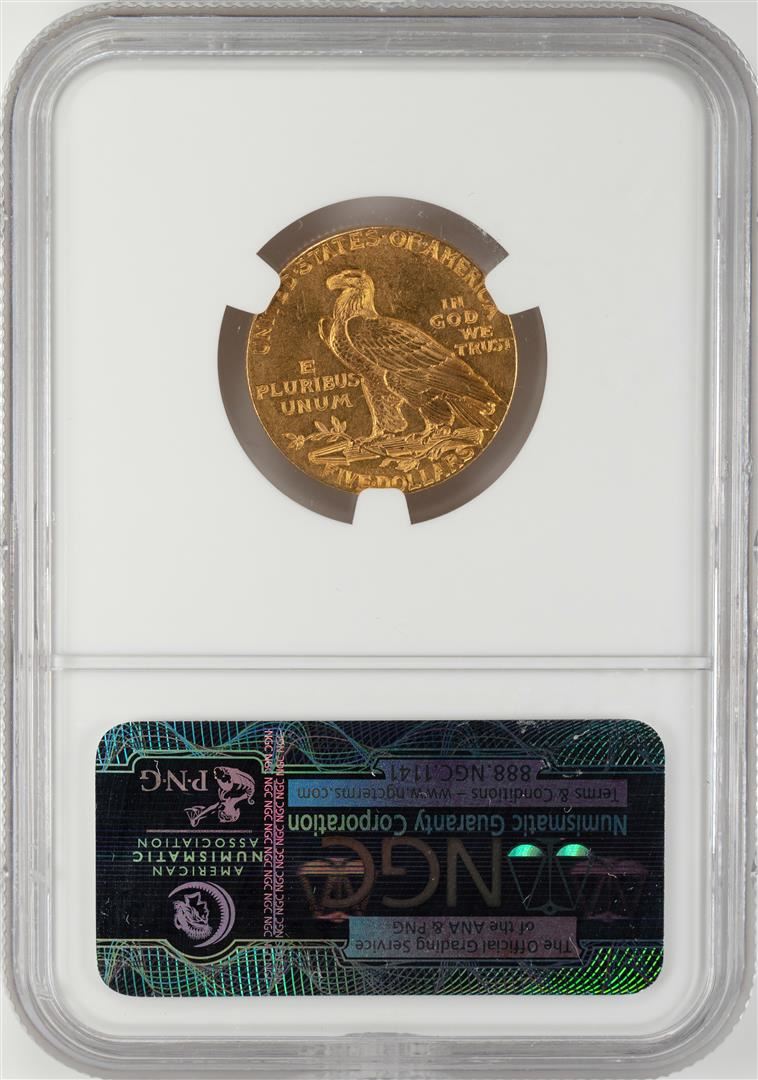 One 1909 $5 Indian Head Half Eagle Gold Coin NGC MS61. NGC Certified.