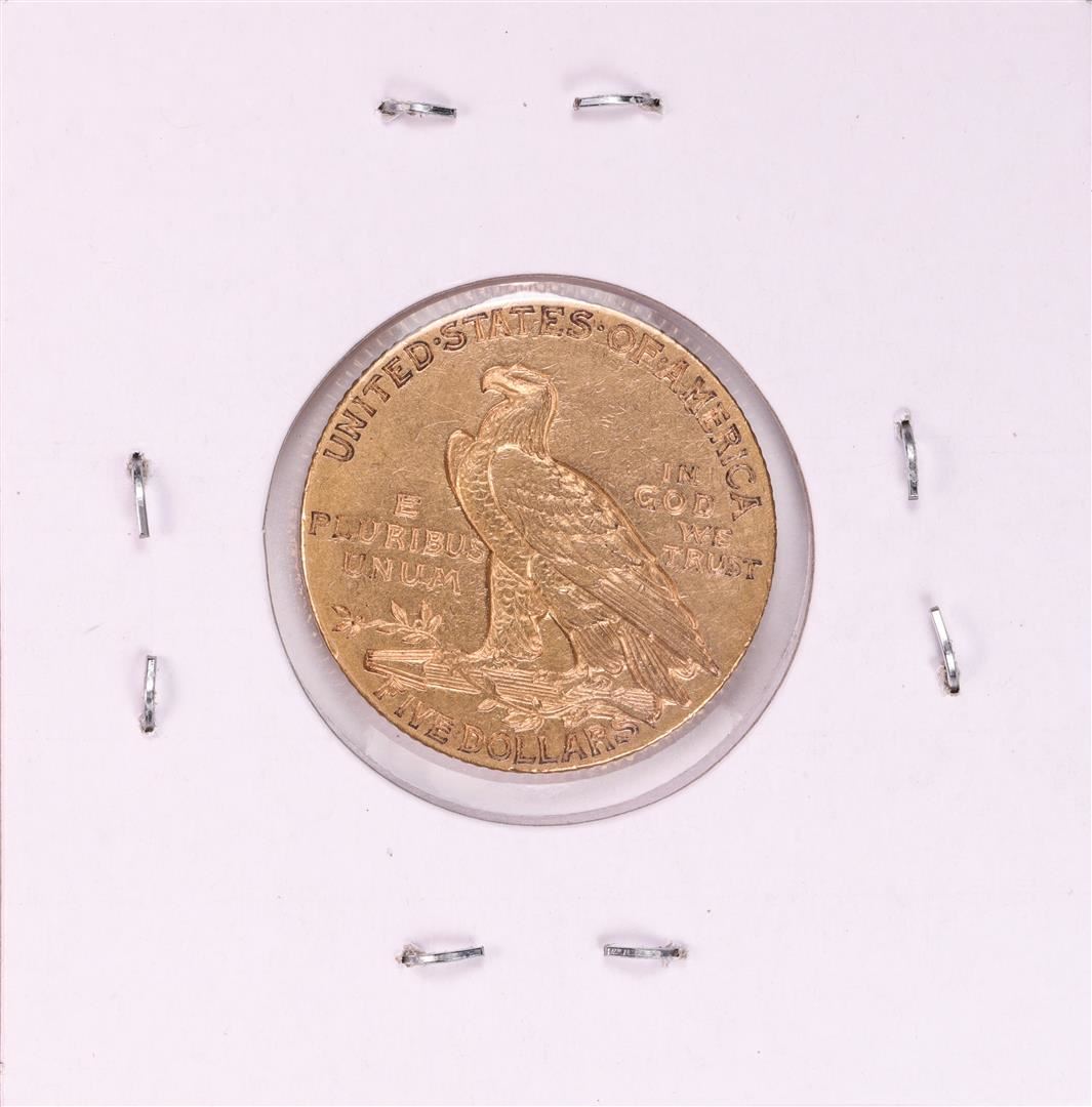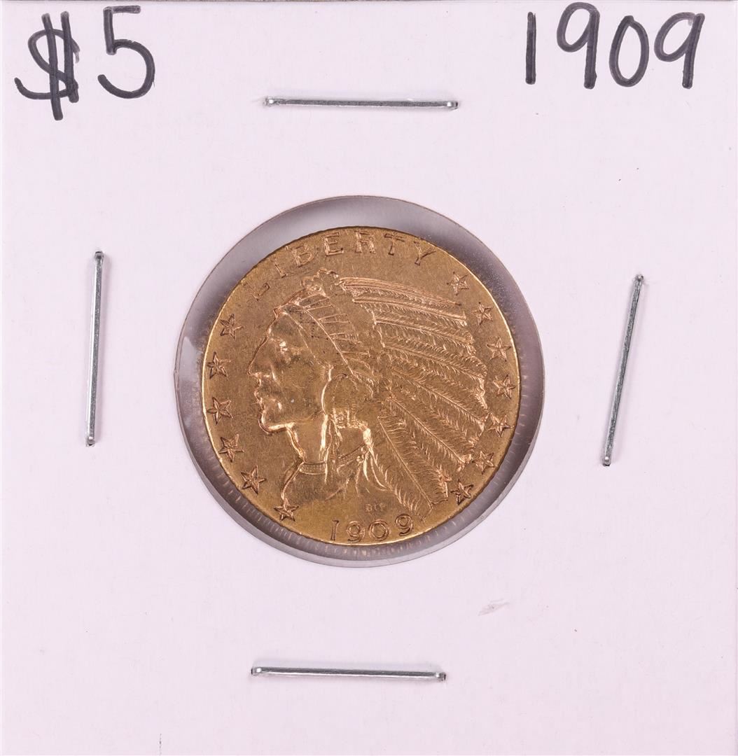 One 1909 $5 Indian Head Half Eagle Gold Coin.