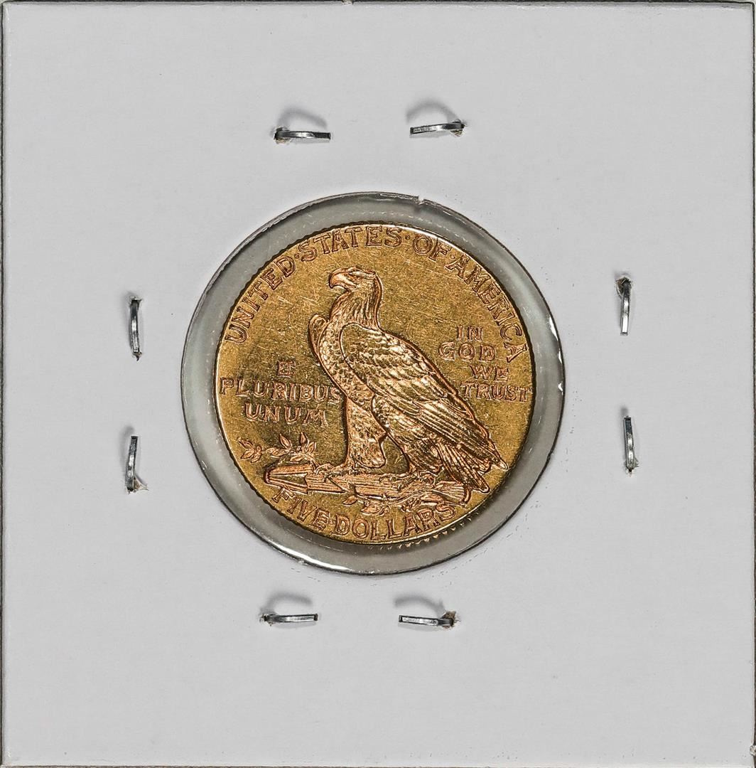 One 1909 $5 Indian Head Half Eagle Gold Coin.