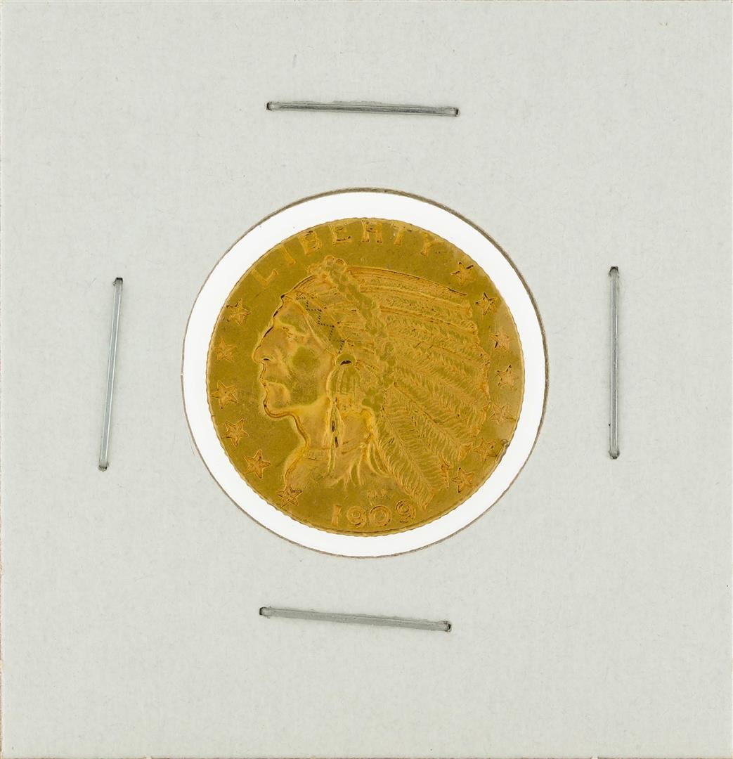 One 1909-D $5 Indian Head Half Eagle Gold Coin.
