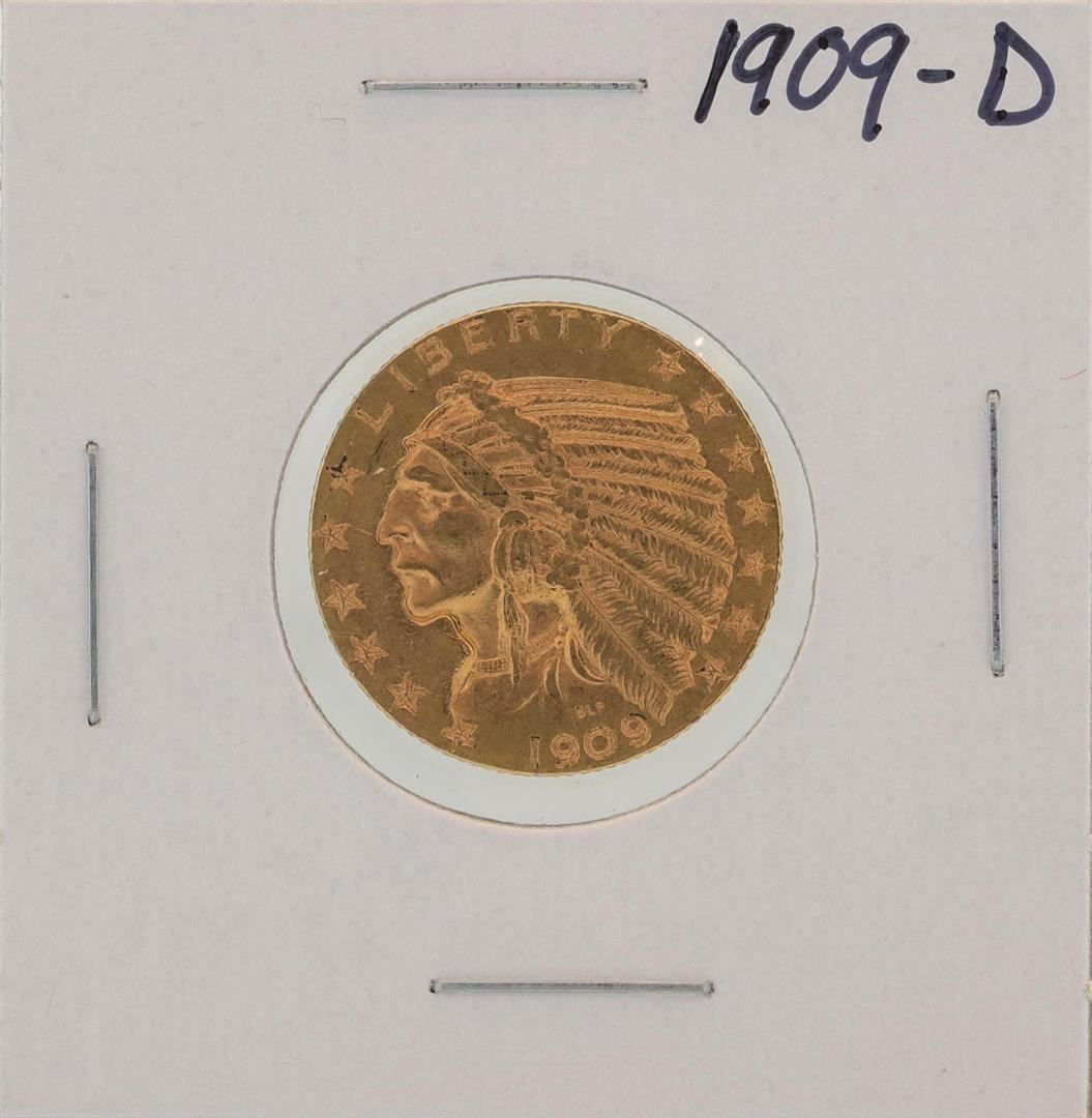 One 1909-D $5 Indian Head Half Eagle Gold Coin.