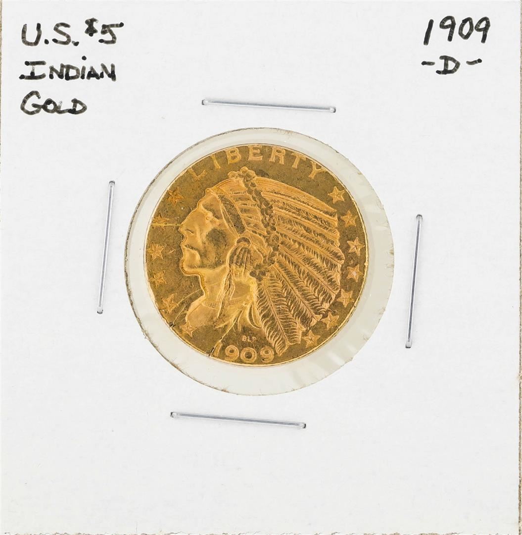One 1909-D $5 Indian Head Half Eagle Gold Coin.