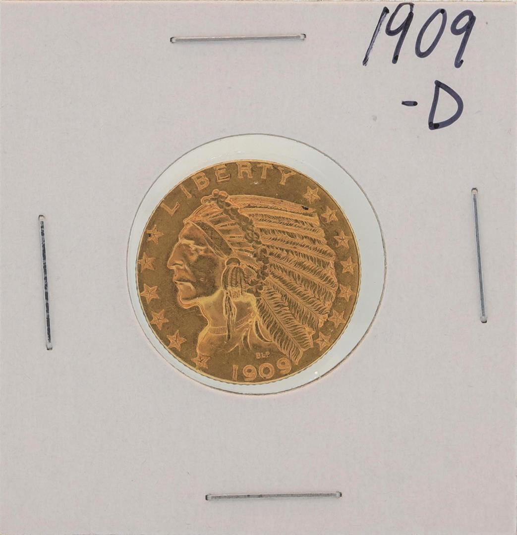 One 1909-D $5 Indian Head Half Eagle Gold Coin.