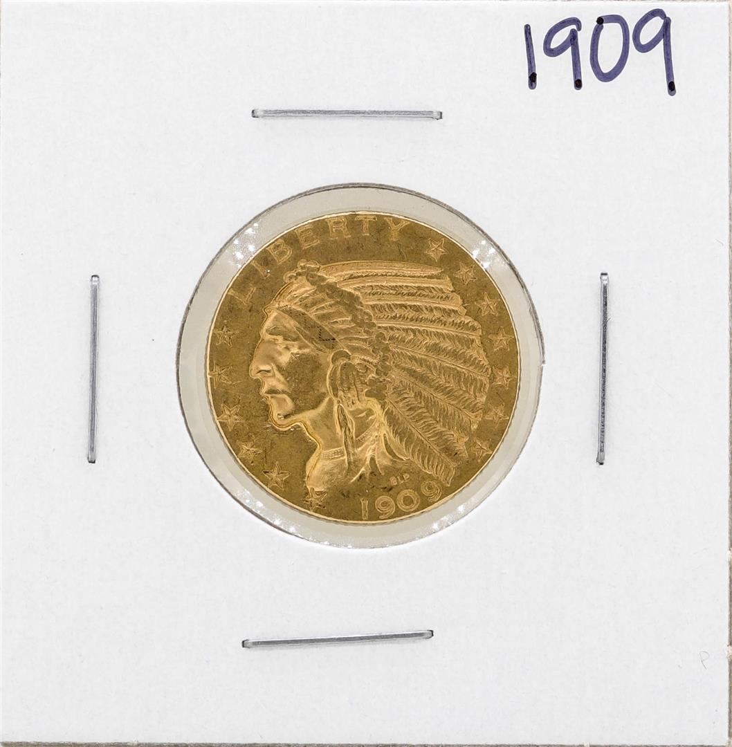 One 1909-D $5 Indian Head Half Eagle Gold Coin.