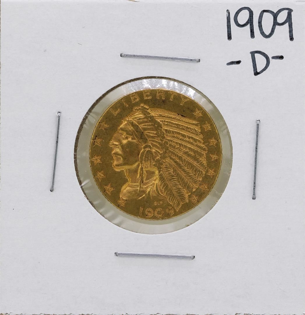 One 1909-D $5 Indian Head Half Eagle Gold Coin.