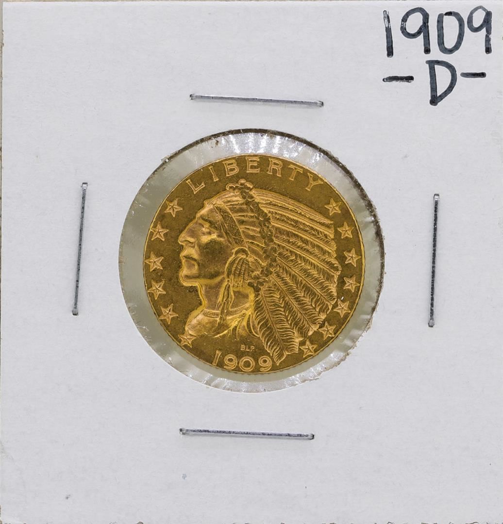 One 1909-D $5 Indian Head Half Eagle Gold Coin.