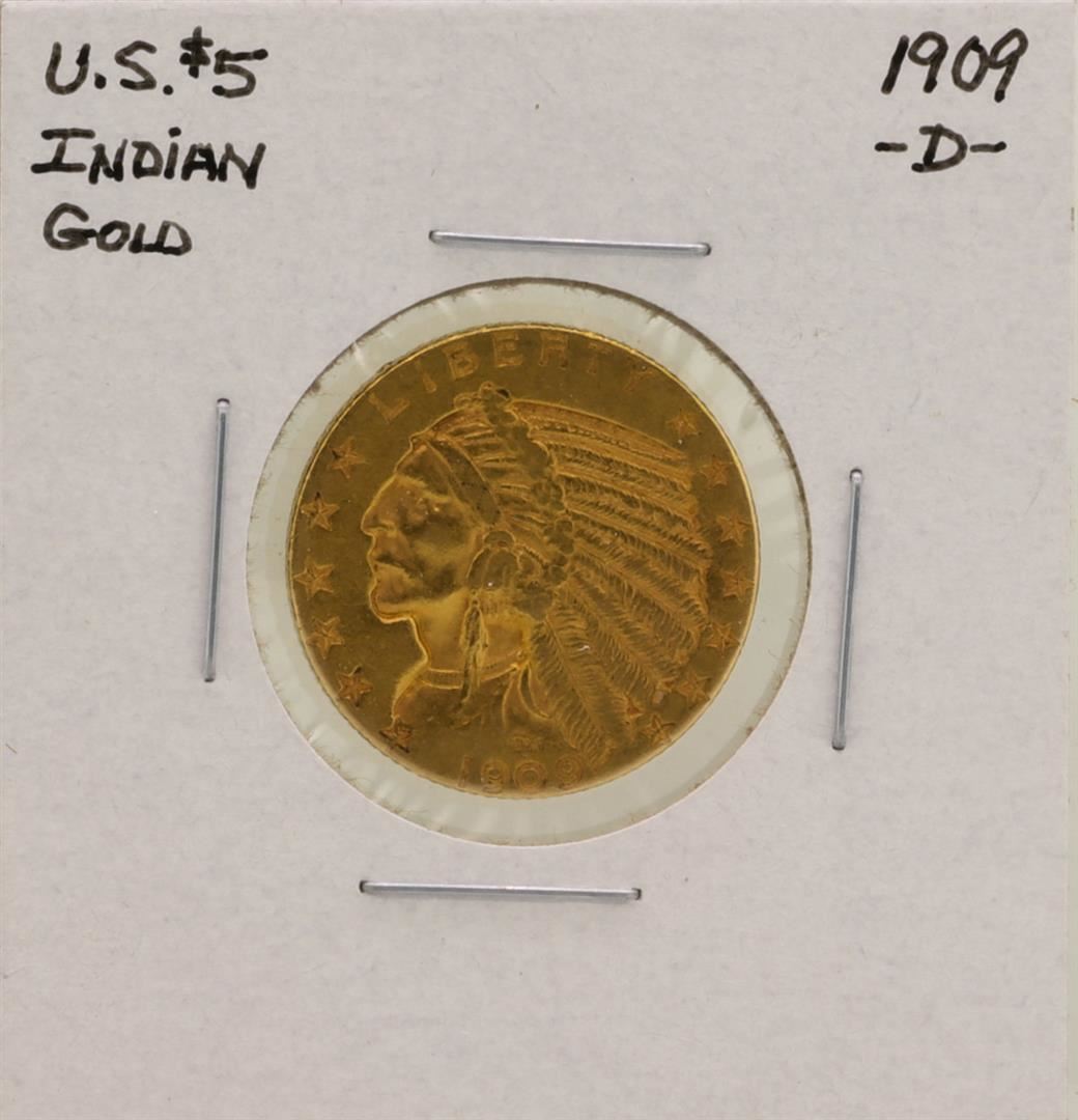 One 1909-D $5 Indian Head Half Eagle Gold Coin.
