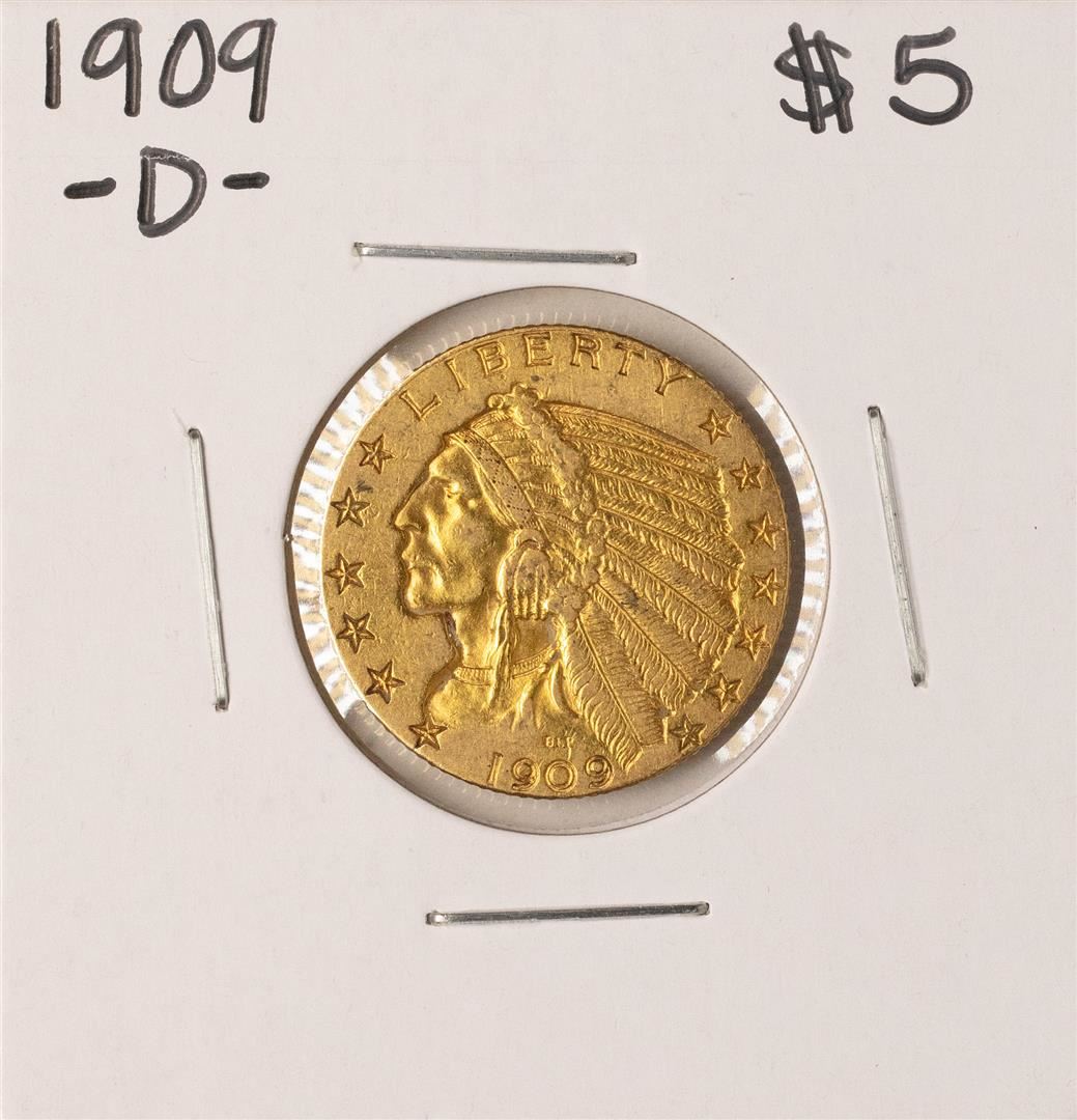 One 1909-D $5 Indian Head Half Eagle Gold Coin.
