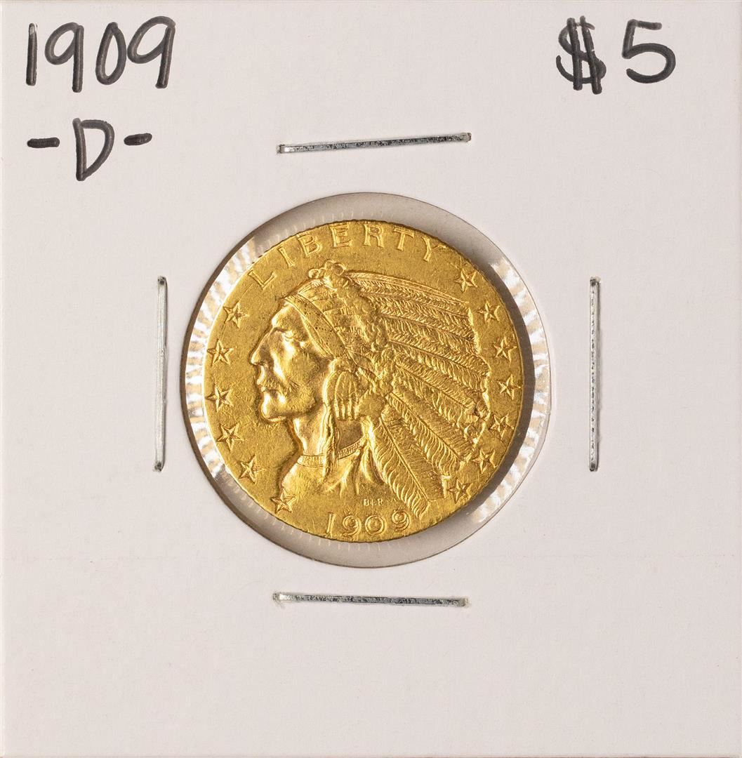One 1909-D $5 Indian Head Half Eagle Gold Coin.