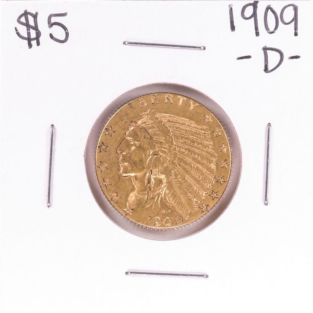 One 1909-D $5 Indian Head Half Eagle Gold Coin.