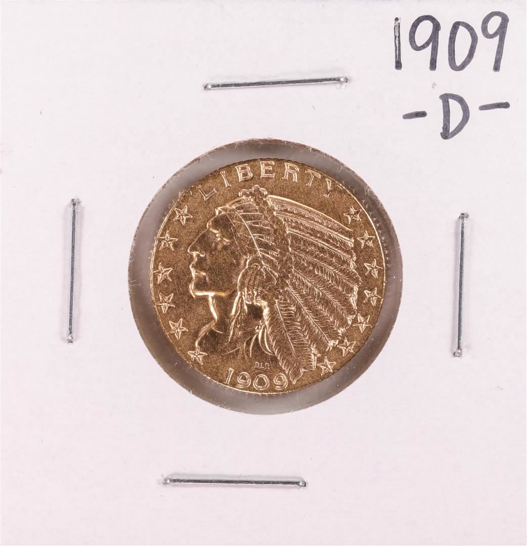 One 1909-D $5 Indian Head Half Eagle Gold Coin.