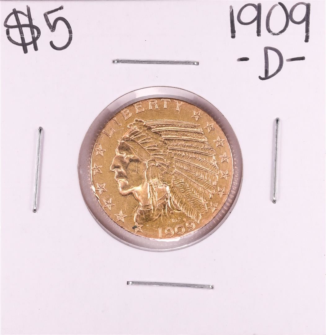 One 1909-D $5 Indian Head Half Eagle Gold Coin.