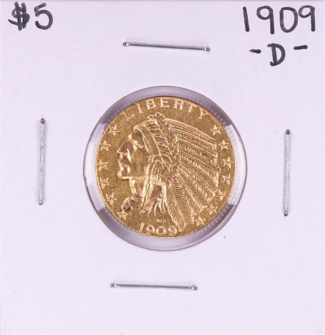 One 1909-D $5 Indian Head Half Eagle Gold Coin.