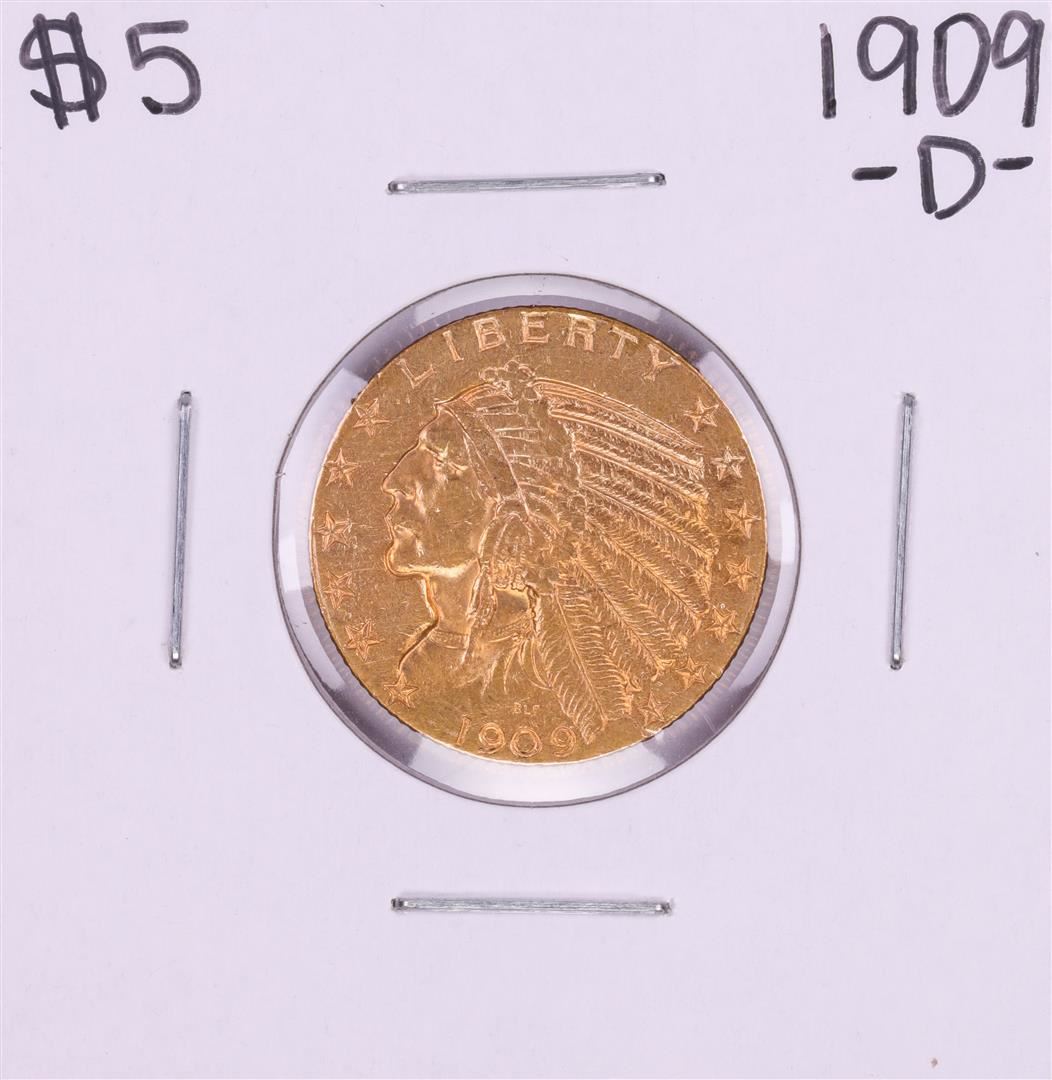 One 1909-D $5 Indian Head Half Eagle Gold Coin.