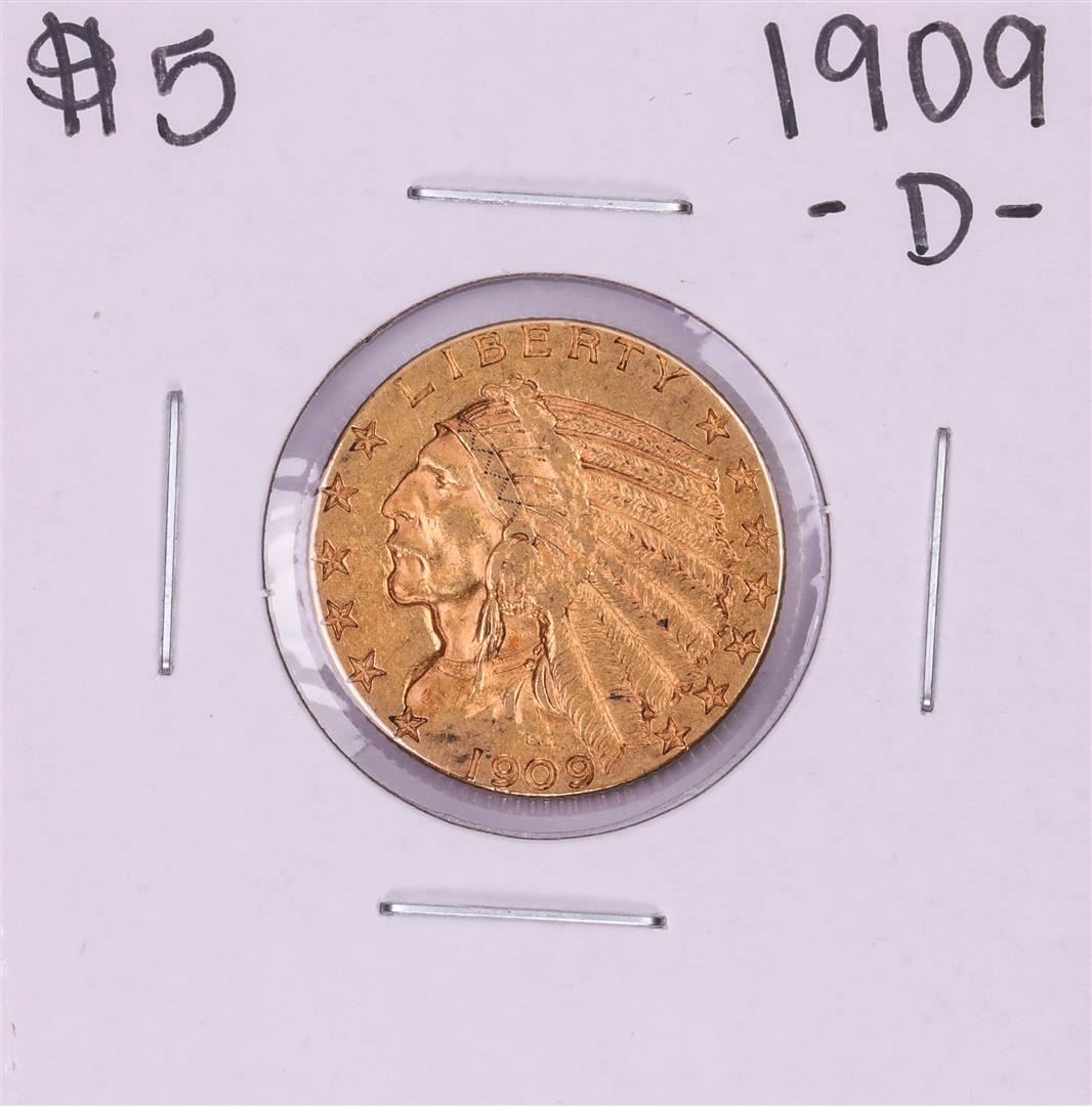 One 1909-D $5 Indian Head Half Eagle Gold Coin.