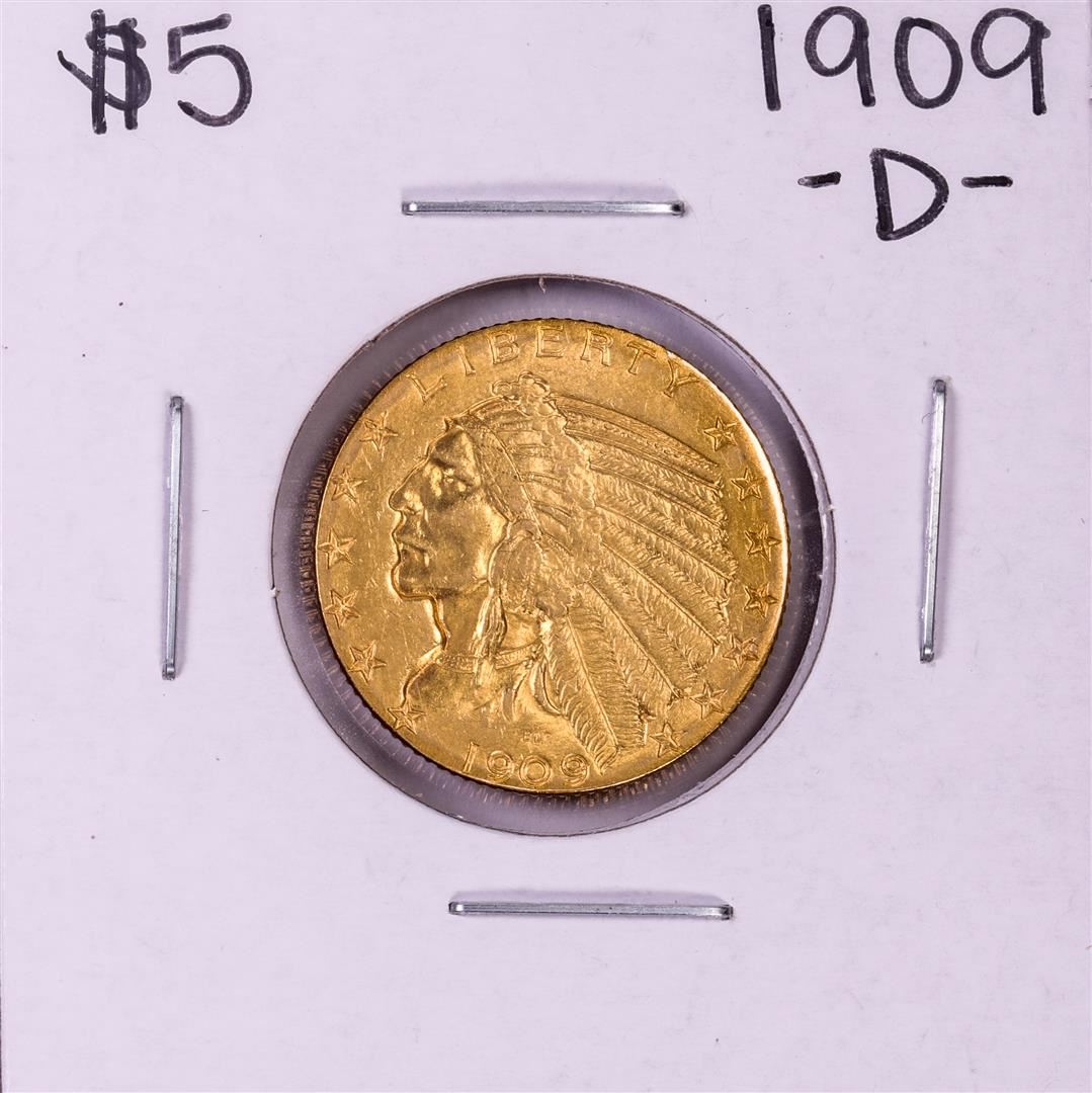 One 1909-D $5 Indian Head Half Eagle Gold Coin.