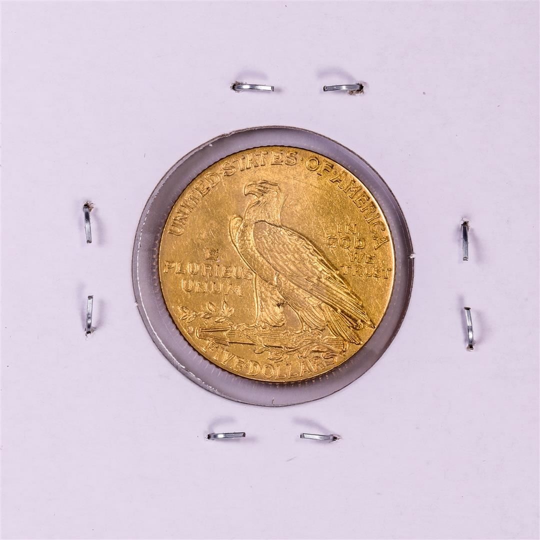 One 1909-D $5 Indian Head Half Eagle Gold Coin.