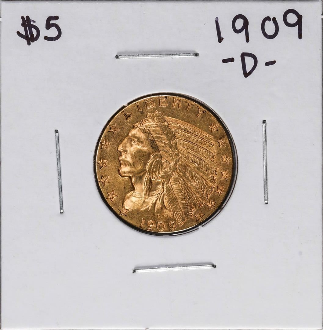 One 1909-D $5 Indian Head Half Eagle Gold Coin.