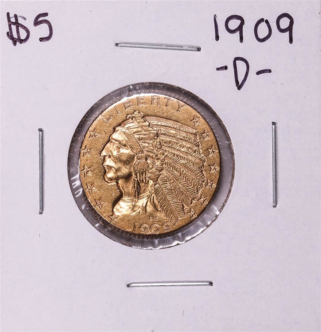 One 1909-D $5 Indian Head Half Eagle Gold Coin.