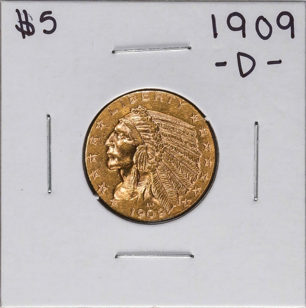 One 1909-D $5 Indian Head Half Eagle Gold Coin.