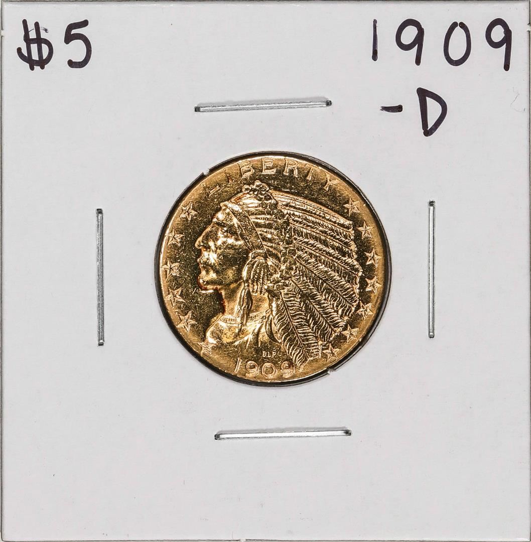 One 1909-D $5 Indian Head Half Eagle Gold Coin.