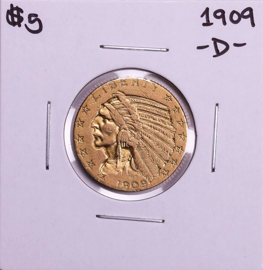 One 1909-D $5 Indian Head Half Eagle Gold Coin.