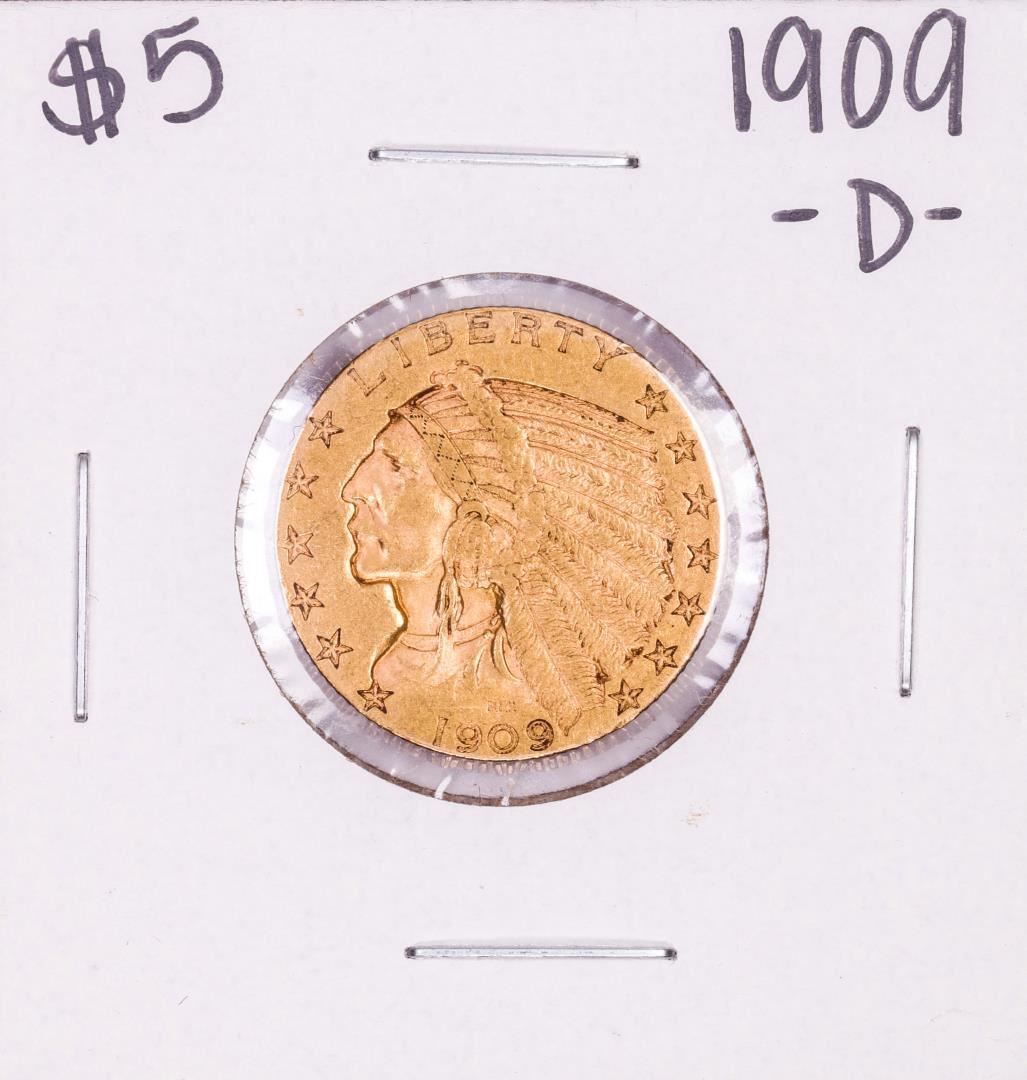 One 1909-D $5 Indian Head Half Eagle Gold Coin.