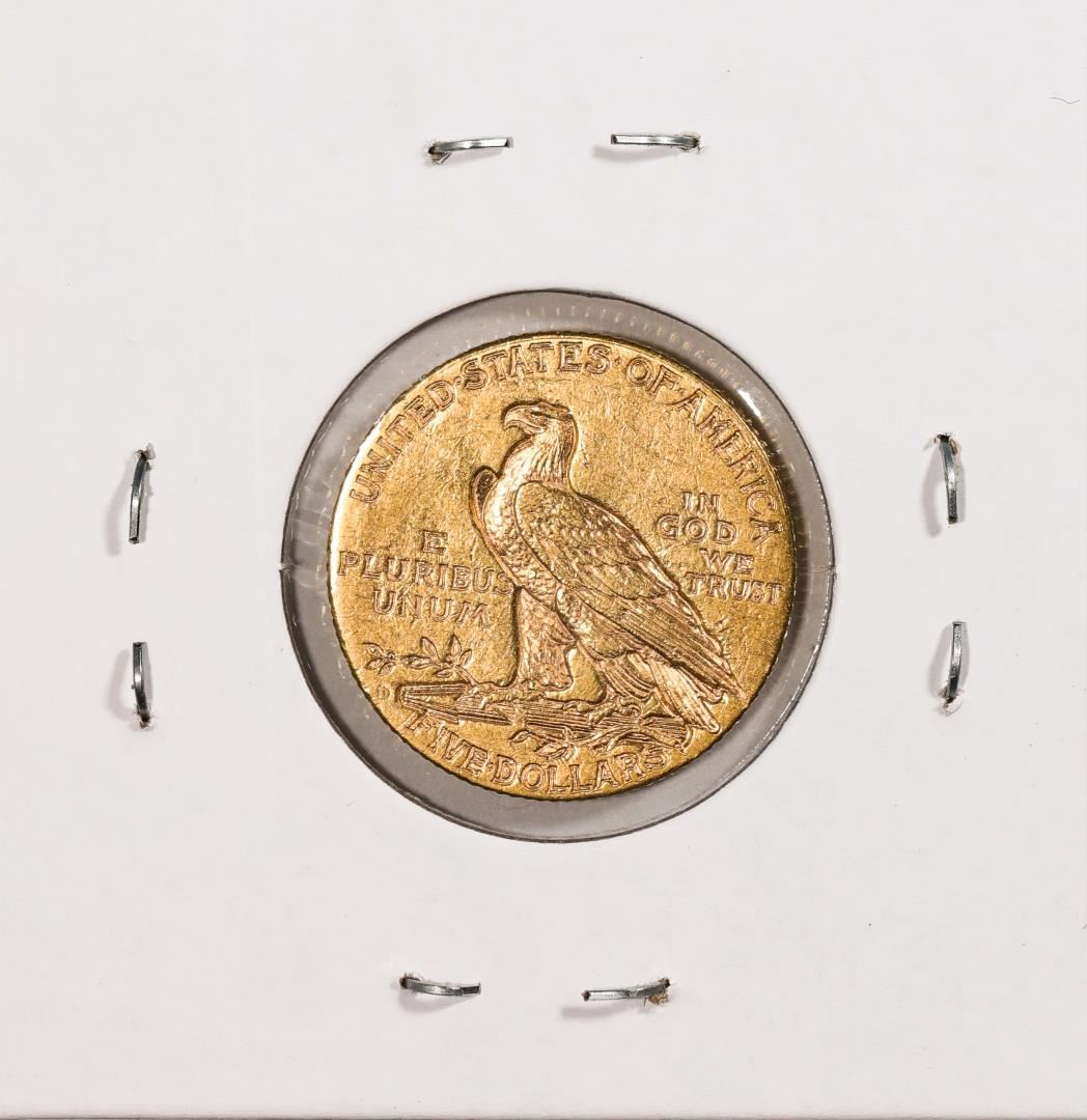 One 1909-D $5 Indian Head Half Eagle Gold Coin.
