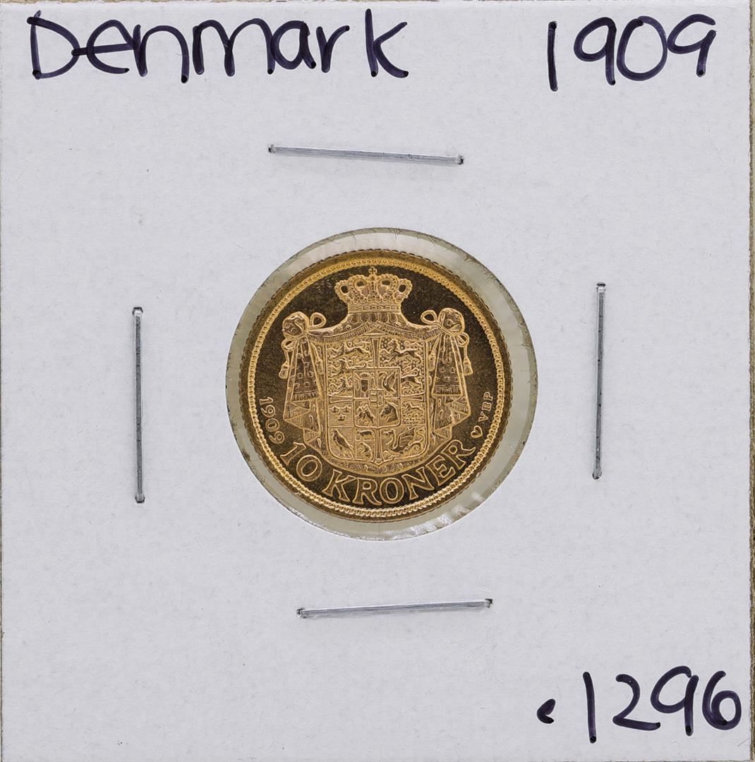 One 1909 Denmark Fredrick VIII 10 Kroner Gold Coin.