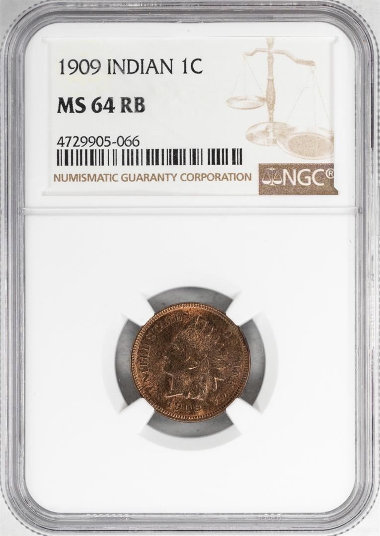 One 1909 Indian Head Penny Coin NGC MS64RB. NGC Certified.