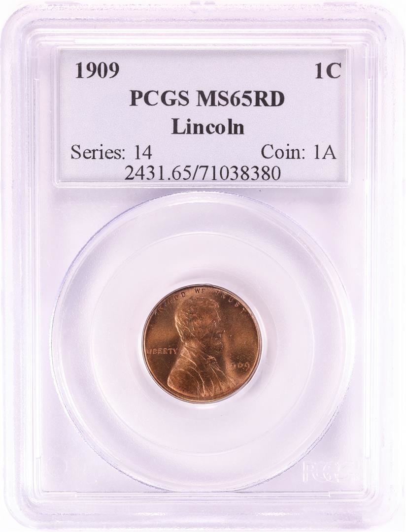 One 1909 Lincoln Wheat Cent Coin PCGS MS65RD. PCGS Graded.