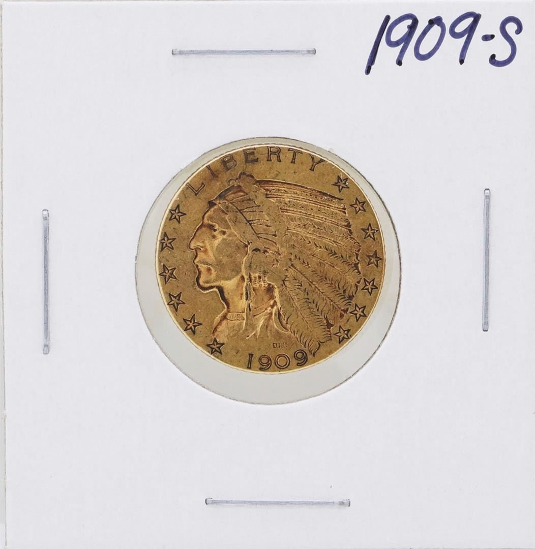 One 1909-S $5 Indian Head Half Eagle Gold Coin.