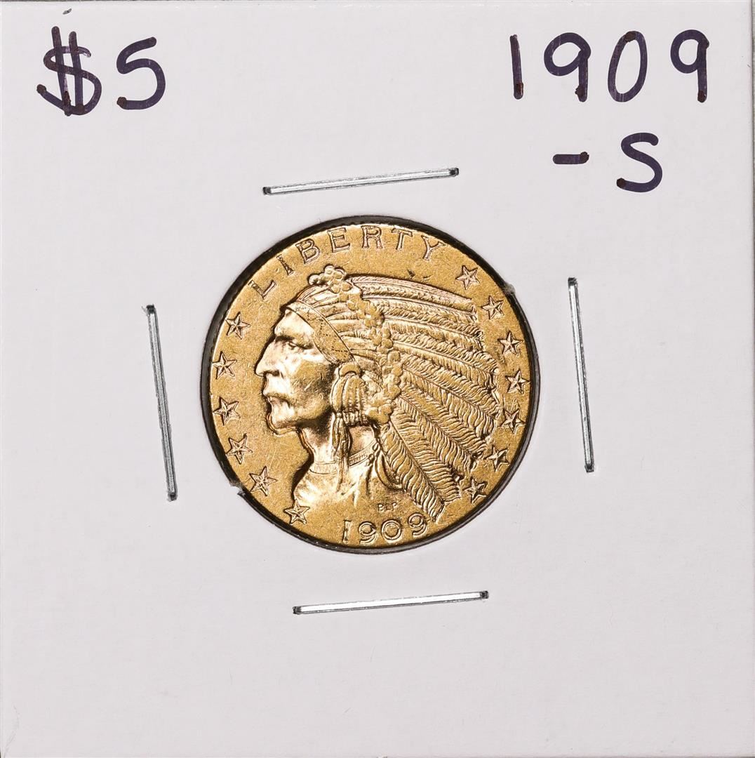 One 1909-S $5 Indian Head Half Eagle Gold Coin.