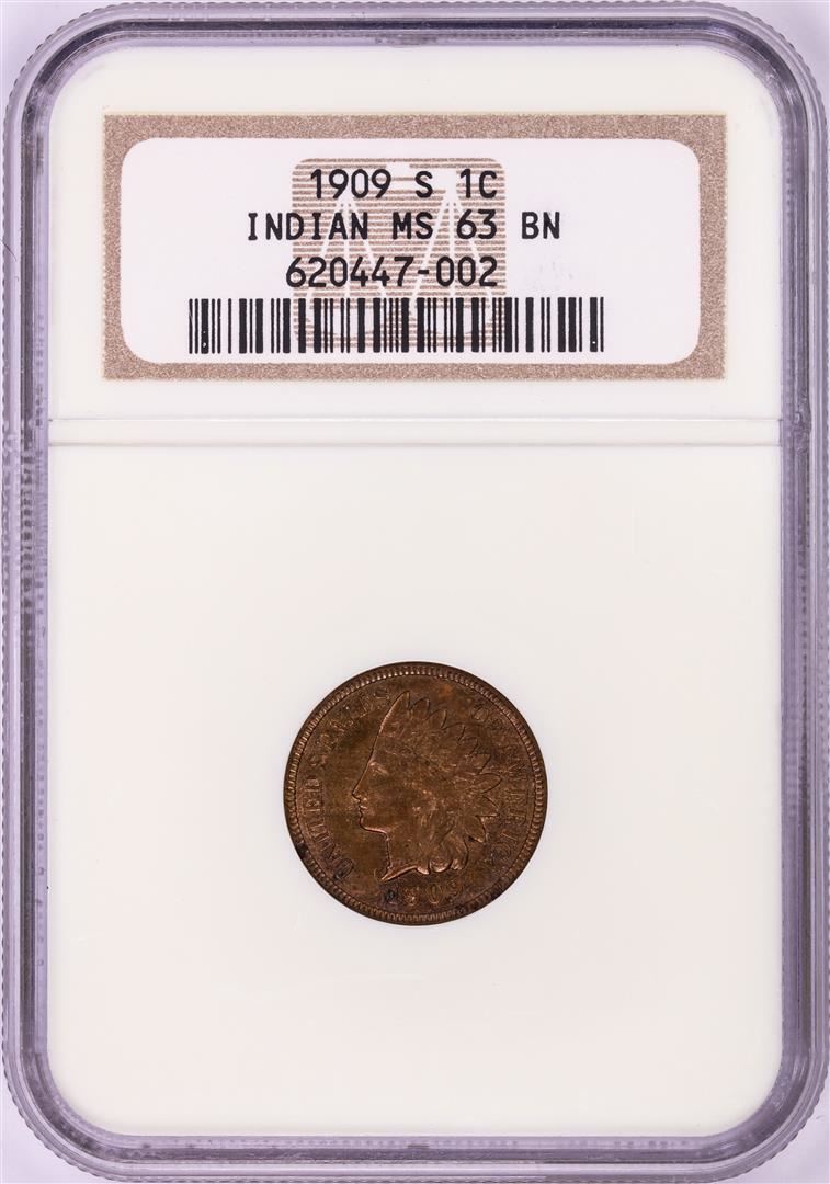 One 1909-S Indian Head Cent Coin NGC MS63BN. NGC Certified.