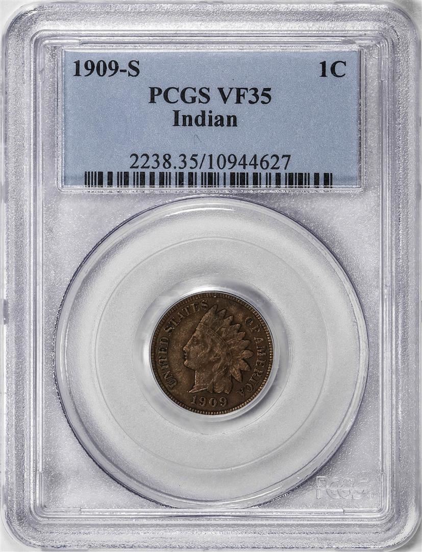 One 1909-S Indian Head Cent Coin PCGS VF35. PCGS Graded.