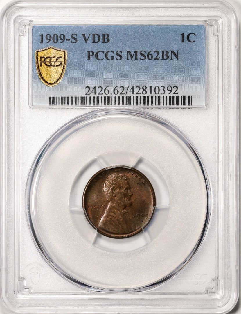One 1909-S VDB Lincoln Wheat Cent Coin PCGS MS62BN. PCGS Graded.
