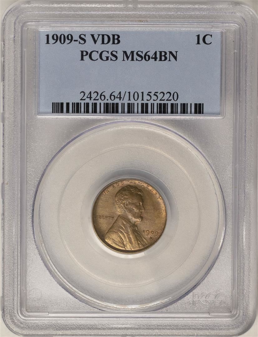 One 1909-S VDB Lincoln Wheat Cent Coin PCGS MS64BN. PCGS Graded.