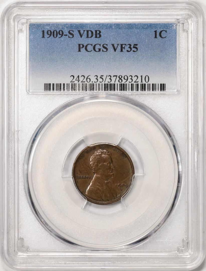 One 1909-S VDB Lincoln Wheat Cent Coin PCGS VF35. PCGS Graded.