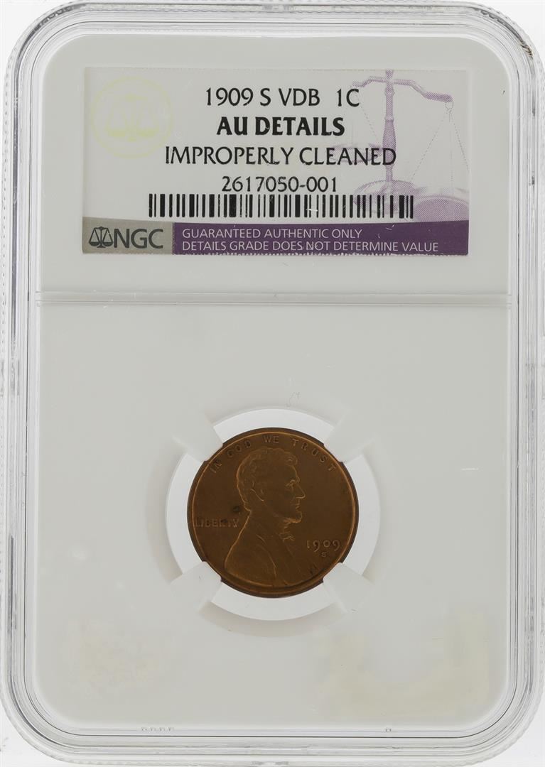 One 1909-S VDB Lincoln Wheat Cent NGC Graded AU Details. NGC Certified.