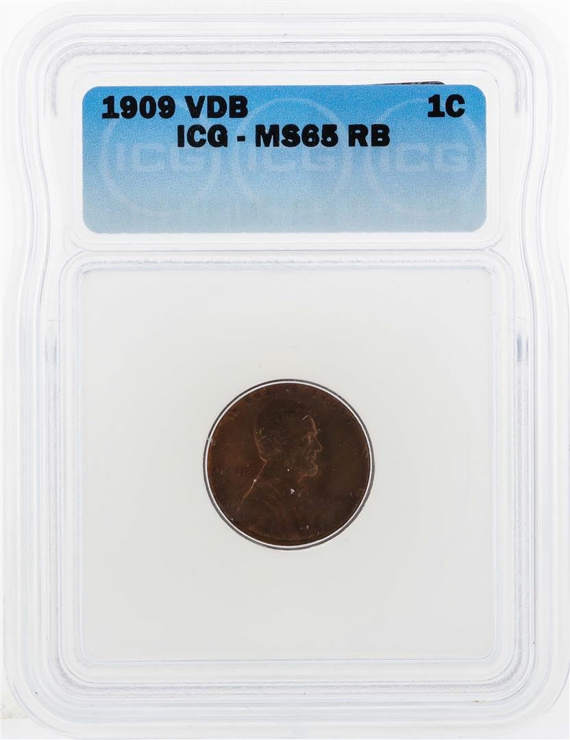 One 1909-VDB Lincoln Wheat Penny ICG MS65RB. ICG Certified.