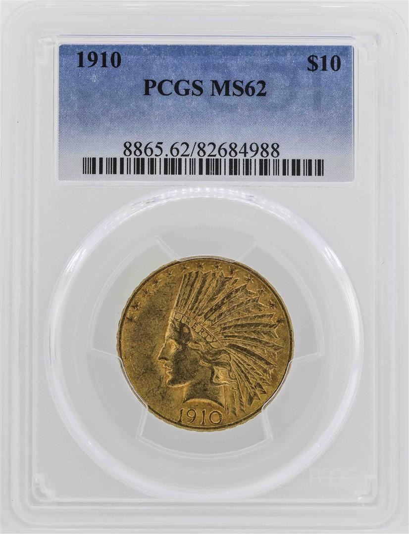 One 1910 $10 Indian Head Eagle Gold Coin PCGS MS62. PCGS Graded.