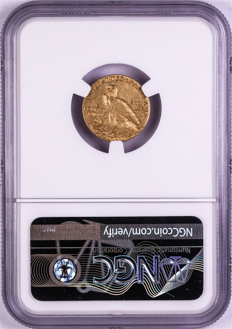 One 1910 $2 1/2 Indian Head Quarter Eagle Gold Coin NGC AU58. NGC Certified.