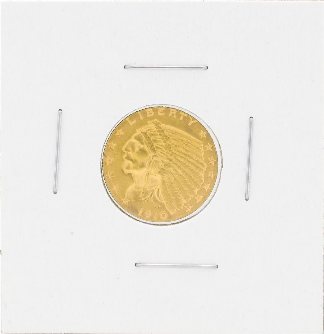 One 1910 $2 1/2 Indian Head Quarter Eagle Gold Coin.