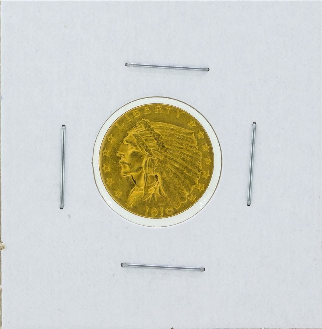 One 1910 $2 1/2 Indian Head Quarter Eagle Gold Coin.