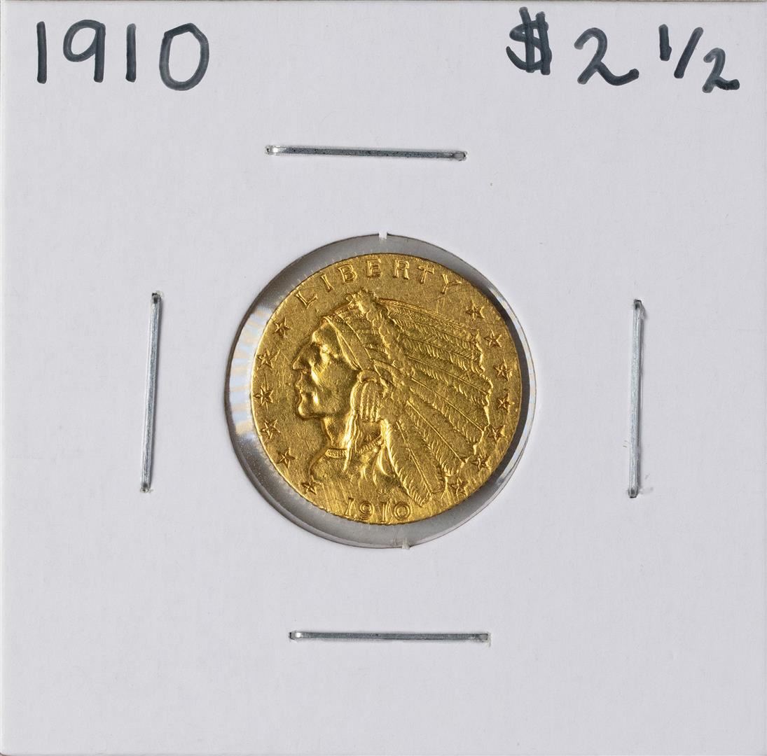 One 1910 $2 1/2 Indian Head Quarter Eagle Gold Coin.