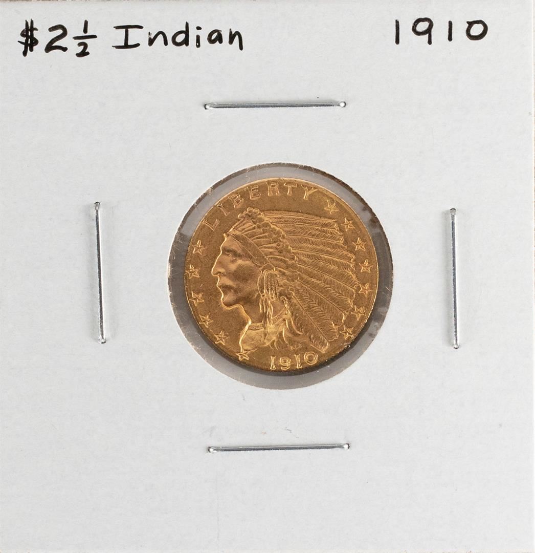 One 1910 $2 1/2 Indian Head Quarter Eagle Gold Coin.
