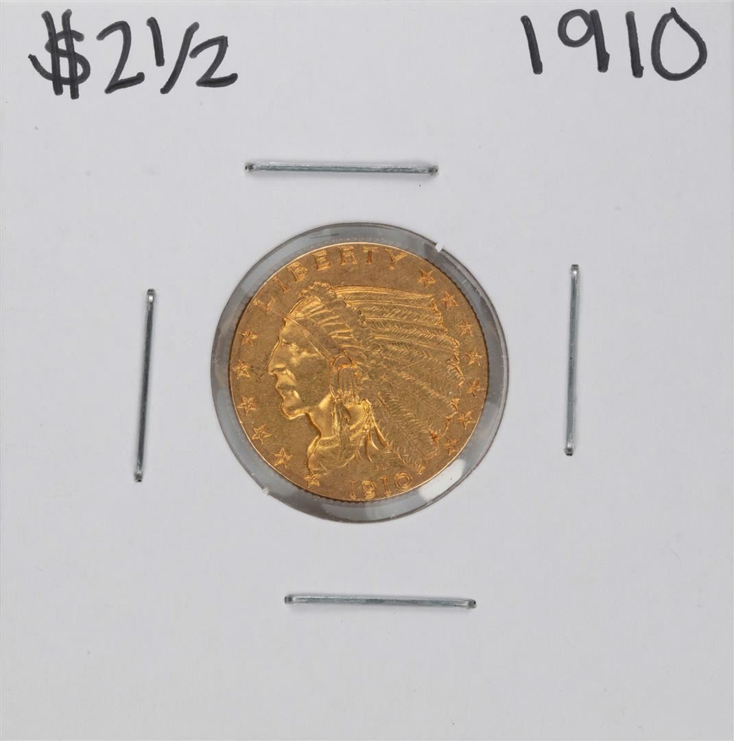 One 1910 $2 1/2 Indian Head Quarter Eagle Gold Coin.
