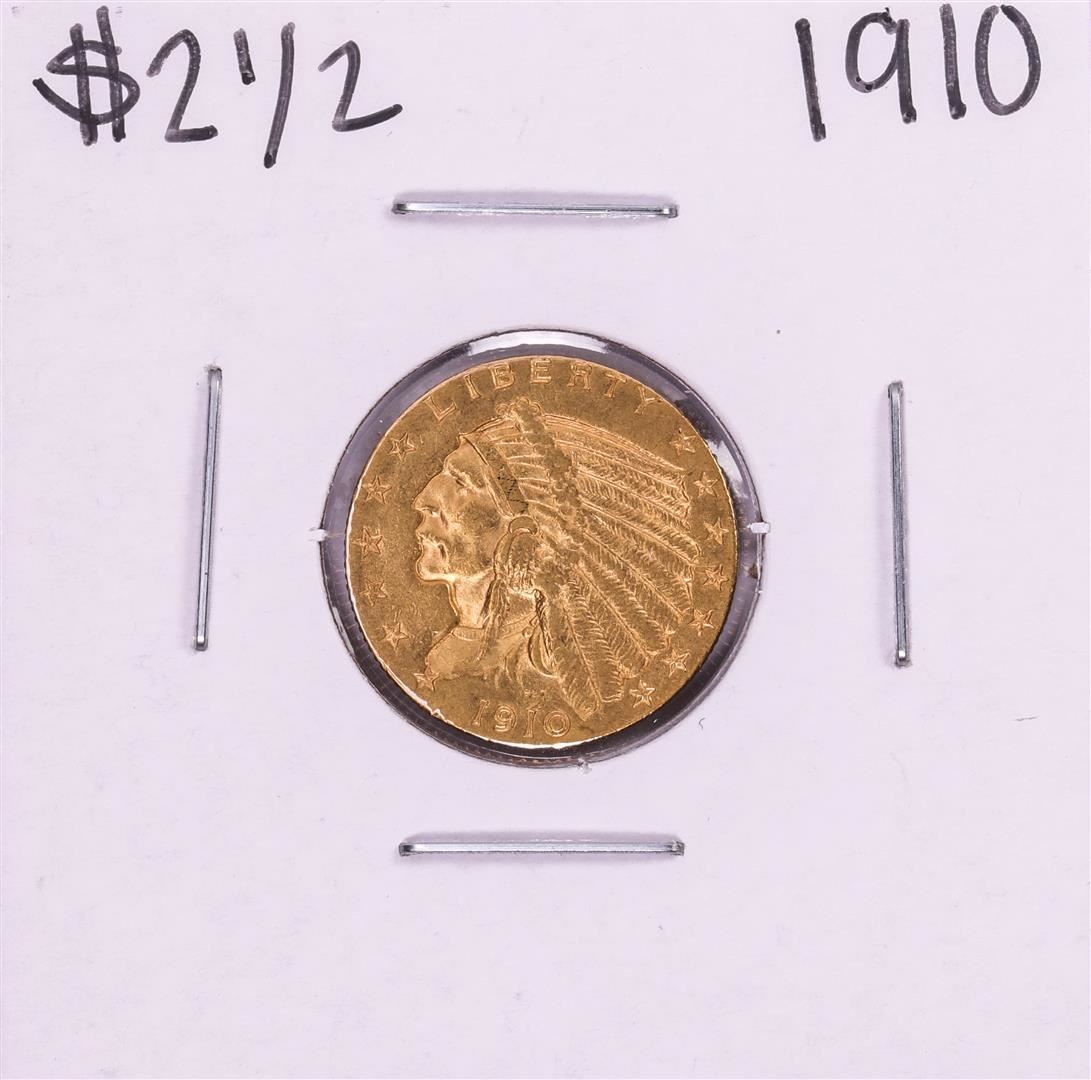 One 1910 $2 1/2 Indian Head Quarter Eagle Gold Coin.