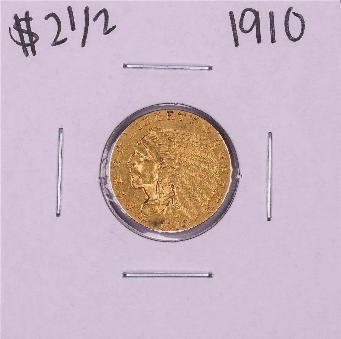 One 1910 $2 1/2 Indian Head Quarter Eagle Gold Coin.